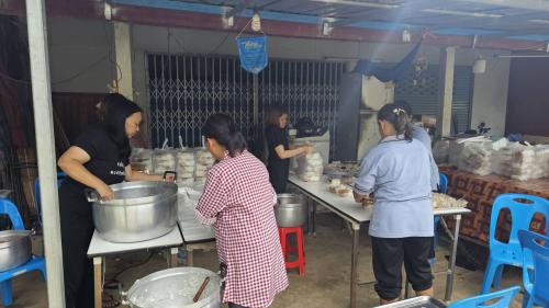 สำนักงานพัฒนาชุมชนอำเภอศรีสำโรง โดยนางลำพา สุขเกษม พัฒนาการอำเภอศรีสำโรง พร้อมด้วยเจ้าหน้าที่สำนักพัฒนาชุมชนอำเภอศรีสำโรง ร่วมประกอบอาหารและตรวจเยี่ยมให้กำลังใจเจ้าหน้าที่และประชาชนจิตอาสาที่ร่วมประกอบอาหารและจัดเตรียมข้าวกล่องเพื่อแจกจ่ายให้กับประชาชนผู้ประสบภัยน้ำท่วมในพื้นที่ตำบลบ้านซ่าน อำเภอศรีสำโรง จังหวัดสุโขทัย