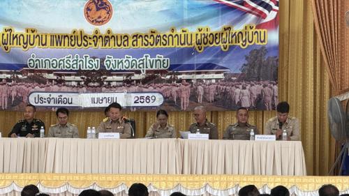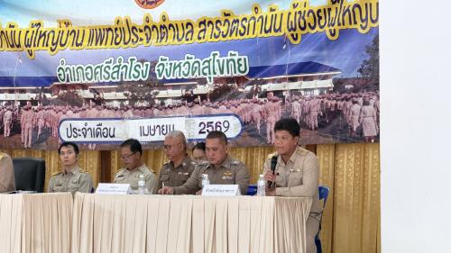 สำนักงานพัฒนาชุมชนอำเภอศรีสำโรง โดยนางลำพา สุขเกษม พัฒนาการอำเภอศรีสำโรง มอบหมายนายพิชุกร ศรีนุต นักวิชาการพัฒนาชุมชนชำนาญการ เข้าร่วมการประชุมประจำเดือนกำนัน ผู้ใหญ่บ้าน แพทย์ประจำตำบล และสารวัตรกำนัน ครั้งที่ 4/2569 (ประจำเดือนเมษายน 2569) โดยมีนายนิรันดร์ พรมละ นายอำเภอศรีสำโรง เป็นประธาน ในการนี้ได้ร่วมรับมอบนโยบายสำคัญจากผู้บริหารกระทรวงมหาดไทย ข้อสั่งการของผู้ว่าราชการจังหวัดสุโขทัย และวาระงานสำคัญของอำเภอ เพื่อขับเคลื่อนสู่การปฏิบัติในพื้นที่
